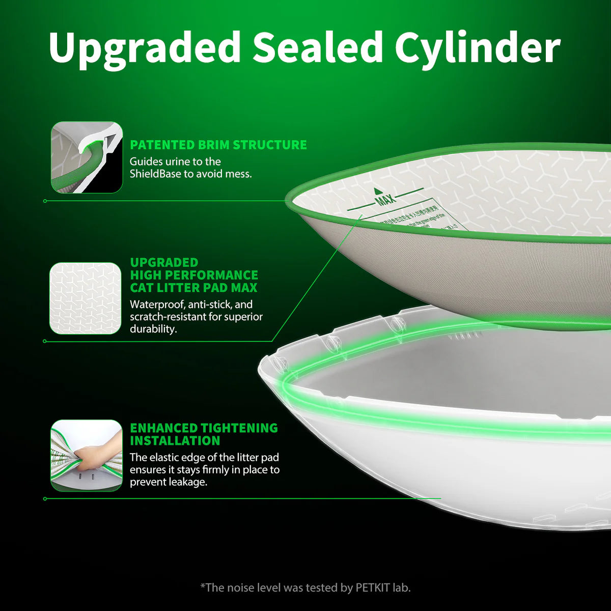 The improved ShieldBase cylinder is designed to ensure the maximum possible tightness of the litter box. This means that it effectively prevents leaks - no need to worry about mess! Tests carried out in the PetKit laboratory have shown that the device can handle up to 2 liters of liquid. The Pura MAX 2 PREMIUM also guarantees absolute safety thanks to 11 built-in sensors that detect the presence of the cat. In addition, the entrance to the litter box remains open at all times, even during cleaning - so that your pet can safely leave it at any time.